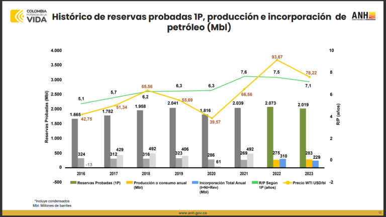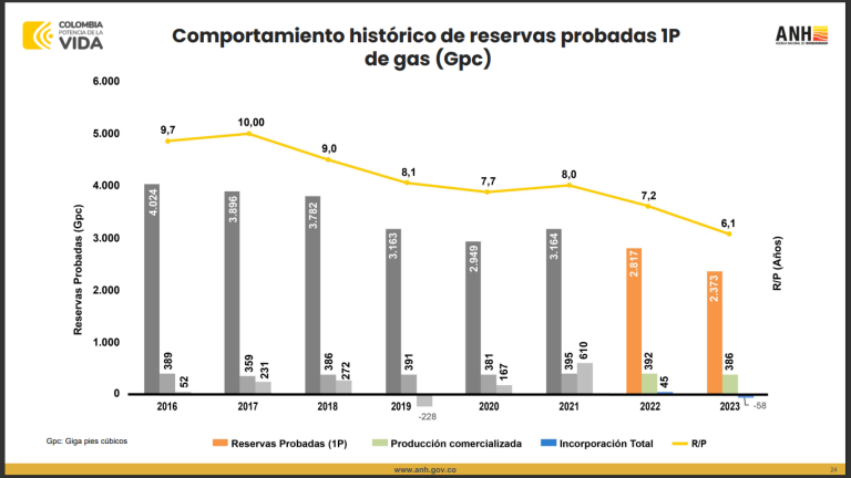 Fuente: Informe de Reservas y Recursos, IRR 2023 de la Agencia Nacional de Hidrocarburos y el Ministerio de Minas y Energía.