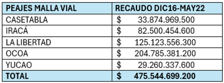 Durante los más de siete años previos a la firma del acta de inicio de la construcción de las obras, que deberían terminar el 9 de junio de 2026, el proyecto recaudó vía peajes más de $475.545 millones a precios corrientes, más del 30% del valor total del proyecto. A precios de hoy, ese valor representa más de $648.300 millones que las comunidades pagaron en peajes, pero no se vieron beneficiadas por obras nuevas e importantes.