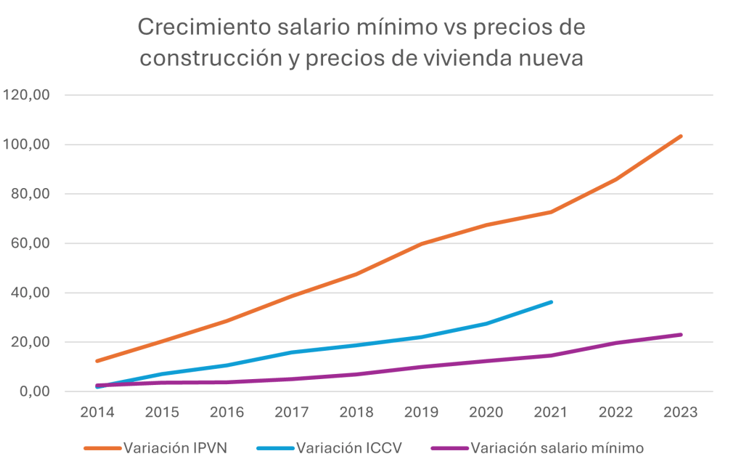 Evolución de los precios de la vivienda y del salario de los colombianos